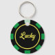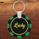 Las Vegas poker chip token custom round metal keychain. Casino gambling coin marker design. Black and green colours or customise. Personalise with name. Unique party favour gift idea for themed wedding party, Birthday, business event and more.