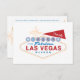 The iconic "Welcome to Las Vegas" sign design is featured on the front reading "RSVP". Back has "reply before date" guest name area, acceptance and meal options.