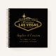 Modern and elegant but casual personalised black and gold Las Vegas Wedding Sign wedding guest book, advice book, or bridal shower gift list record book with the couple's names, wedding date, and location printed on the front cover.