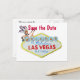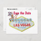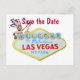 Las Vegas wedding save the date postcards to announce your marriage plans. Brides planning to get married in Nevada will like this popular postcard design with the famous sign from The Strip and vintage style showgirl art.