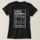 Lasagne Nutrition Facts For Thanksgiving Christmas T-Shirt