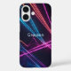 Bright magenta, orange, and blue lines like laser lights on a black background creates a strikingly beautiful iPhone case. Very high-tech and modern design!