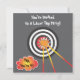 Super fun Laser Tag Birthday Invitation with colourful laser gun shooting at a bullseye target with cool comic book starbursts and cloud thought bubbles. Customisable to fit your needs. Hand drawn illustration by McBooboo.