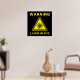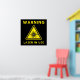 Yellow and black laser warning symbol poster with "Warning - Laser In Use" text.