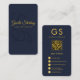 Lash Technician Monogram Navy Blue Gold QR Code Business Card