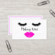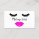 A business card featuring eyelashes and brightly coloured lipstick. Perfect for a makeup artist.