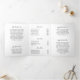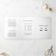 Simple trifold brochure with a minimalist black and white design featuring eyes, lashes and brows along with your business name in an elegant script font with swashes on the front panel. The back panel has your hours of operation and contact information. The inner fold panel has two headers and text boxes. The inside has multiple templates for information about your business on the outer panels and a price list in the middle panel. The font colour may be changed to any colour you wish by clicking the customise button. This trifold brochure is perfect for a lash technician but can also work for any business in the beauty industry.