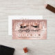 Modern, chic, trendy Rose Gold Lashes loyalty card. Design features faux glitter drips and set of eyelashes with rose gold faux foil, sparkly glitter background and typography script. Personalise with your discount details on the front and contact details on the back.