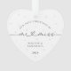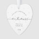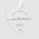 Mark your last Christmas as a Mr. and Miss with this timeless, minimalist ornament. Featuring classic and script black and white fonts and soft white pearl imagery in the background, this ornament exudes simple elegance, perfect for engaged couples. It's a beautiful reminder of your first Christmas together before becoming a married couple, adding a modern yet sentimental touch to your holiday decor. Easily customise it with your names and the year to make this keepsake uniquely yours, commemorating your engagement season in style.