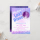 © Socialite Designs Inc. & LICENSORS. Celebrate a Disco Bachelorette party by inviting the guests with this retro glam last disco bachelorette party invitation. Colours are blue, pink and purple.