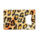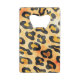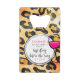 Credit card style bottle opener for a bachelorette party. A leopard spots pattern for a background. A cool looking wine glass outlined in thick black ink. The wine inside the glass is hot pink. Vivid and bright colours. Personalise with your bachelorette info on a white hand drawn circle. Last fling before the ring written in a cool trendy font.