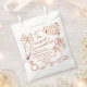 Saddle up for the best night and prep for the morning after! Give your bridal squad the ultimate "Let’s Go Girls" experience with this retro-chic Cowgirl Survival Kit favor bag. Perfectly blending desert boho vibes with disco dazzle, this bag is designed to hold all the essentials your bridesmaids need to survive the wildest bach in the West. Featuring a hand-drawn illustration of a disco-cowgirl lounging in a martini glass, this design is accented with playful stars, diamonds, and a classic disco ball. The earthy terracotta ink pops against the clean white bag, making it a stylish keepsake for your San Diego, Nashville, or Las Vegas bachelorette weekend. Simply fill these bags with "recovery" essentials and place them in your bridesmaids' hotel welcome baskets or hand them out at the end of the night. It’s the thoughtful (and practical) way to say thank you for celebrating the bride-to-be!