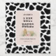 Last Rodeo Cowgirl Bachelorette Weekend Party Wine Label with cowhide pattern accents and boho western flowers in black and soft pink.