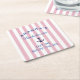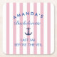 "Make your bachelorette celebration even more stylish with these "Last Sail Before The Veil" paper coasters! Featuring a fun nautical theme with pink and white stripes and bold navy blue lettering, these coasters are the perfect touch for toasts, cocktails, and photos. Ideal for your bridal shower, beachside bash, or boat party, these coasters will keep your drinks in place and add to the festive vibe of the party."