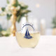 Nautical blue and white bridal shower / bachelorette party shot glass with sailboat and phrase "last sail before the veil". Personalise it with your event details.