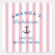 "Get ready to stick with the theme and celebrate the bride-to-be in style with this "Last Sail Before The Veil" sticker! Featuring fun pink and white stripes and bold navy blue lettering, this sticker is perfect for adding a touch of nautical flair to your bachelorette party. Stick it on water bottles, party favours, or any item that needs a little extra fun! A great keepsake for the bride tribe to remember this special celebration."