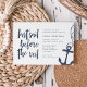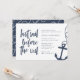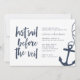 Invite the bride's besties to a boat or boating themed bachelorette celebration with these cute nautical bachelorette party invitations. Modern coastal design for your boat charter or yacht party features "last sail before the veil" in navy blue hand sketched lettering, with a rope and anchor illustration at the right.