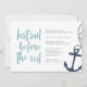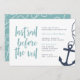 Invite the bride's besties to a boat or boating themed bachelorette celebration with these cute nautical bachelorette party invitations. Modern coastal design for your boat charter or yacht party features "last sail before the veil" in aqua hand sketched lettering, with a rope and anchor illustration at the right.