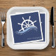 Nautical blue and white bridal shower / bachelorette party napkin with ship helm and phrase "last sail before the veil". Personalise it with your event details.