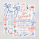 Transport your bridal party to the Italian Riviera with these "Let’s Get Spritzed" bachelorette party weekend itinerary invitations. Perfect for an Amalfi Coast, Positano, or Mediterranean-themed weekend, this design features chic hand-drawn illustrations of citrus sprig, Aperol-style cocktails, and breezy coastal elements. The front side features a playful "Ciao Bella" theme with all your event details, while the reverse side includes a fully customizable hourly itinerary to keep the "spritz" flowing from arrival to the farewell brunch. Printed on premium cardstock or as a digital download, with a classic blue and off-white cabana stripe background, these invitations capture the effortless elegance of an Italian summer.