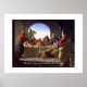 Judas Iscariot standing at the front looks back over his right shoulder at Jesus Christ and the other apostles with an ugly expression on his face. Judas later betrayed Jesus to the Sanhedrin in the Garden of Gethsemane