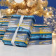 Beach series: A brilliant surfing gift-wrap design with an amusing birthday pun - Happy Surfday instead of Happy Birthday. The photograph shows three surfers going for the last dip of the day at Bantham Beach in Devon.