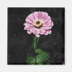 A photograph of a pink Zinnia, with double pink petal flower with yellow stars, in a garden.