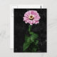 A photograph of a pink Zinnia, with double pink petal flower with yellow stars, in a garden.