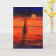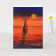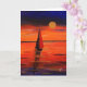 A colourful painting of a sail boot sailing into the evening sun