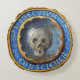 Adapted from Queen Juana of Castile's Book of Hours, illustrated by Gerard Horenbout in the early sixteenth century, a creepy skull under glass, put there to remind even a queen that she faced mortality and death.