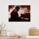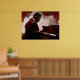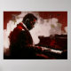 This moody abstract artwork captures the quiet intensity of a late-night pianist lost in music. Bathed in deep reds, smoky browns, and muted shadows, the solitary figure leans into the piano with focused intimacy, as if the world beyond the bar has faded away. Dripping textures and rough brushstrokes evoke dim lights, lingering smoke, and the hum of a nearly empty room after midnight.