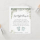 The light and airy vibe of this baby shower is full of lush sage greenery, bronze accents, and dainty white florals that pay homage to the Baby in Bloom theme while keeping it gender neutral. Green is a hue full of vivaciousness, and life making it the perfect theme for a baby shower. If you’re a nature lover, then you’re going to love this all-natural gender neutral theme! Just think of the succulent party favours. Change background colour or add graphics to match your shower theme. Need coordinating graphics please contact me for a custom order. Of course it's not required that you play games at the baby shower, but consider this: You're going to have an all-ages group, and most of the guests have probably never met one another before the party. Mixing in a few of these classic baby shower games is a perfect way to break the ice. Our double sided game cards are an elegant and practical addition to any shower. These professionally designed cards are quickly customisable. Add your custom wording to this design by using the "Edit this design template" boxes on the right-hand side of the item, or click the blue "Customise it" button to arrange the text, change the fonts and colours and to also add additional information or images to this design. Click "Customise Further" to open full editing options. If you need any coordinating items, (thank you cards, etc.) please contact me for a custom order. ****For custom requests you need my help with, do not place this merchandise in your cart. Instead, email me your request at lauralise@iyhtvdesigns.com A link to your merchandise will be emailed to you once the item is available. You can use that link to place your order. Please allow up to 48 hours.
