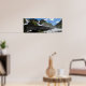 Poster print of the double Latefossen waterfall cascading under a bridge into a river in Norway in panorama format.