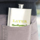 The product is a good size and came exactly as it was pictured. The lid is not attached to the flask, which could be dangerous on drunken nights... The print came out surprisingly well and looks very sharp. Would definitely recommend.