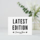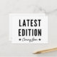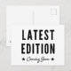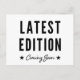 Announce a new baby with this humourous pregnancy announcement postcard featuring the words "Latest Edition Coming Soon" in black over a white background.