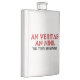 The product is a good size and came exactly as it was pictured. The lid is not attached to the flask, which could be dangerous on drunken nights... The print came out surprisingly well and looks very sharp. Would definitely recommend.