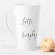 On a classic white latte mug is the text "Latte Everyday" for latte lovers everywhere in decorative script in which you can change it to your own personal text or logo. Minimal modern vibes.