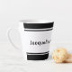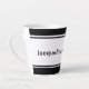 Elevate your coffee experience with this simple and stylish latte mug. Featuring bold black and white stripes around the top and bottom, this mug strikes the perfect balance between modern minimalism and everyday functionality. The centre is left open for personalised text, making it an ideal gift or a chic addition to your collection. Sip your favourite latte in style with this minimalistic coffee mug. The bold stripes create a striking contrast, while the customisable centre text lets you make it uniquely yours. Perfect for home or office use, this mug blends simplicity with elegance.