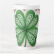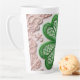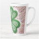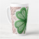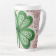 A cute and whimsical green shamrock on a girly coquette background made of dusky pink delicate lace.