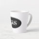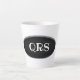 Black oval, with drop shadow, looks three dimensional on white background. Personalize with your own initials in white, centered in oval.