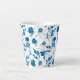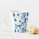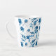 This latte mug is shown in a lovely blue floral print.