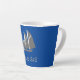 Boat under sail is a grey "text graphic" with a drop shadow in white. Text beneath "Born to Sail" also has white shadow and may be personalised. Background in blue.