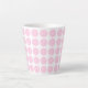This small size latte mug is shown with a cute pink polka dots print.