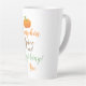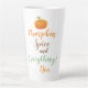 This large size latte mug is shown with a cute pumpkin spice and everything nice print.