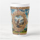 This is a latte mug that is a big one. It has an elaborate frame with semi precious stone and a painting.