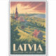 Latvia retro vector travel design. Latvia, nestled in the heart of the Baltic region, is a country rich in medieval charm, forested landscapes, and coastal beauty.