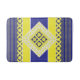 Latvian folk art blue yellow geometric Medallion Bath Mat