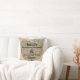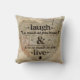 Home accent throw pillow in brown and beige, with saying, "Laugh as much as you breathe, live as much as you love!"
