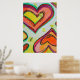 Painting detail of two hearts from the "Laugh" painting. Hearts are yellow, orange, peach, pink, magenta, & red. Media is watercolor with glass glitter. This poster is great for many occasions, such as, weddings, engagements, birth announcements, save the date cards, shower invitations, Valentine's Day and more! Customise the poster print by adding your own text to it.