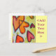 Peach, pink, and orange hearts fly across the painting like loose fall leaves caught in a breeze. A green outline traces each heart. Pale yellow colour dots are like confetti between the hearts. The watercolor painting has a light layer of gold and pink on top. Laugh hearts are a detail from Inspirational Word "Laugh" painting. Personalise this postcard with your own text and images.